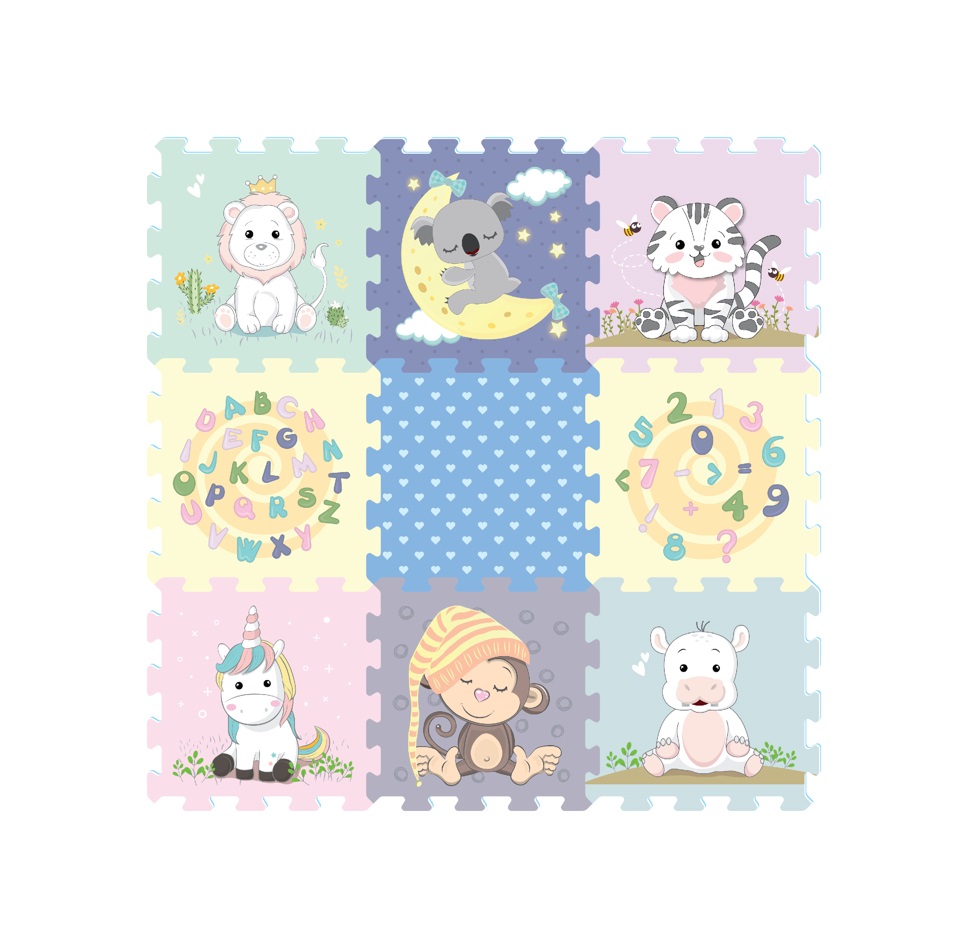 9 pieces heat transferred printed puzzle. Waterproof EVA Puzzle Mat.